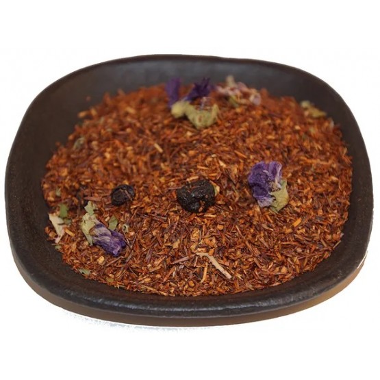Rooibos med blå malva och hela blåbär. Arom av björnbär, blåbär och grädde.