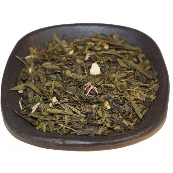 Grönt te av Sencha och Gunpowder, apelsinskal, rosa klint och arom av grapefrukt.