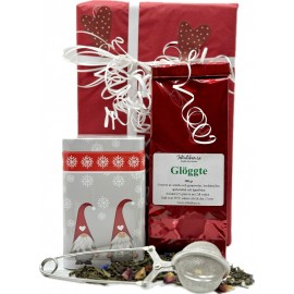 Glögg: Grönt te av sencha, gunpowder, kryddnejlika apelsinskal och äppelbitar. Smaksatt med krydd och äpplearom.