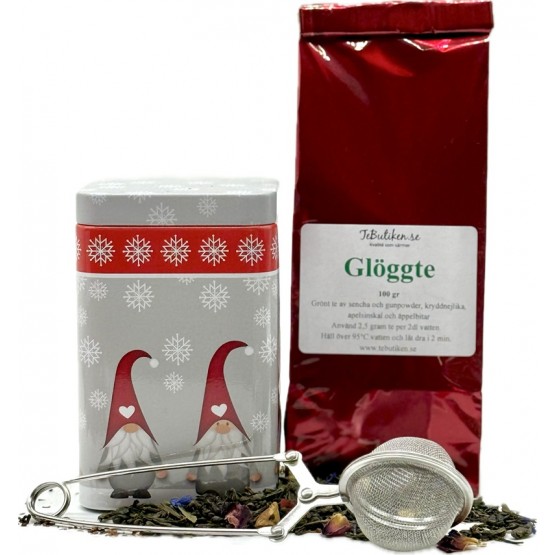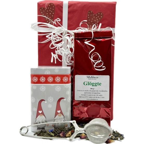 Julklapp söt teburk, 100 gr Grönt Glöggte och en tesil.