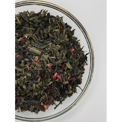 Ekologisk Sencha bas (95%), frystorkade hallon och arom.