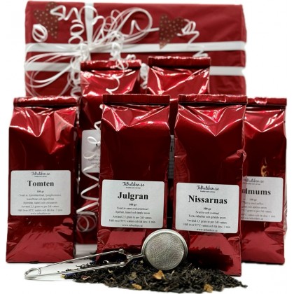 100 gr av vardera: Tomten, Nissarnas, Glöggte, Julmums, Adventste och Julgransblandning.