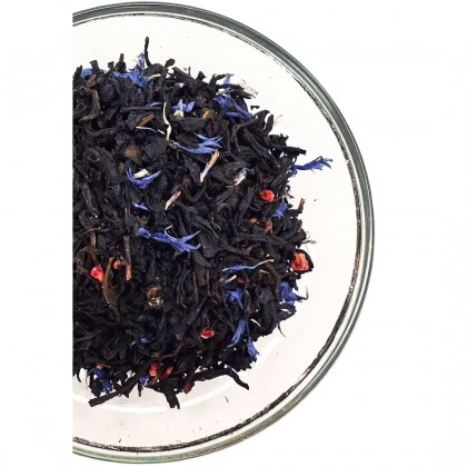 Svart ekologiskt te (93%), hallonbitar, blåbärsbitar, blåklint och arom.